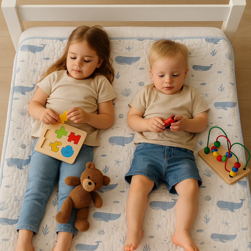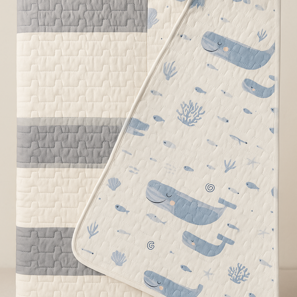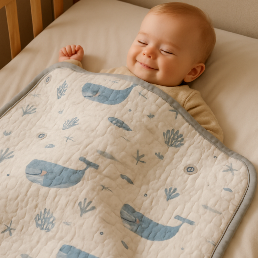 “The Aqua Breeze Baby Organic Quilt is designed to give your little one the perfect blend of comfort, safety, and style. Crafted from 100% certified organic cotton, it feels luxuriously soft against delicate skin while ensuring breathability for a restful sleep. The soothing aqua tone adds a touch of calm to your nursery décor. Lightweight yet warm, this quilt is ideal for year-round use, keeping your baby cozy in winter and comfortably cool in summer. Gentle, safe, and eco-friendly – the perfect quilt for your baby’s everyday snuggles.”